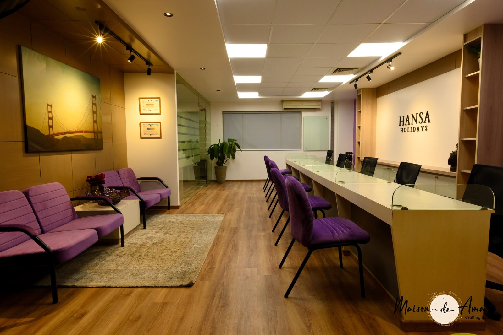 For the luxury travel agency, we created an elegant and inviting interior that reflects the sophistication and adventure of high-end travel. The design features a harmonious blend of rich textures and premium materials, including plush seating, bespoke furnishings, and captivating artwork that evokes global destinations. Thoughtfully curated lighting enhances the atmosphere, providing both functionality and warmth. We incorporated dedicated areas for client consultations, ensuring a seamless experience that feels exclusive and tailored. The overall aesthetic combines modern luxury with a sense of wanderlust, creating a space that inspires clients as they plan their next unforgettable journey.