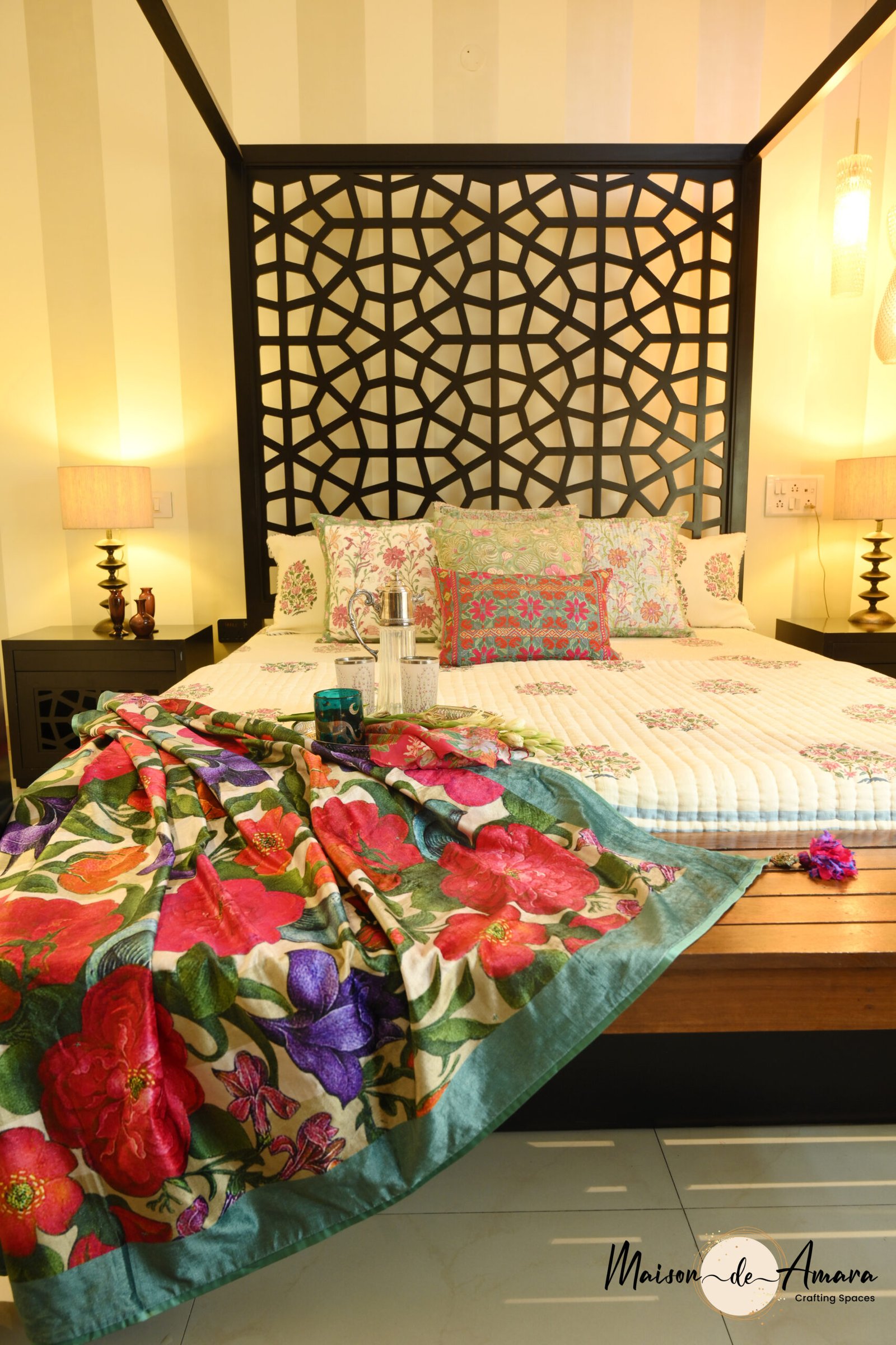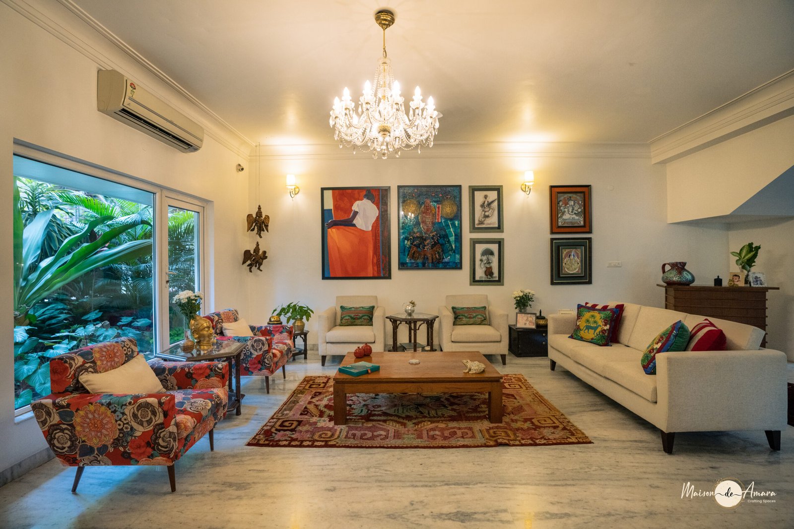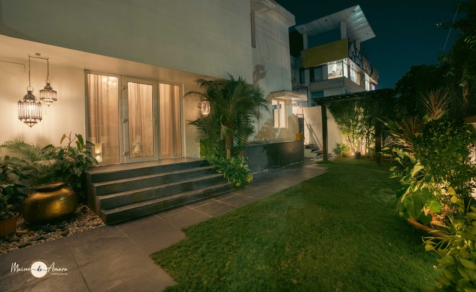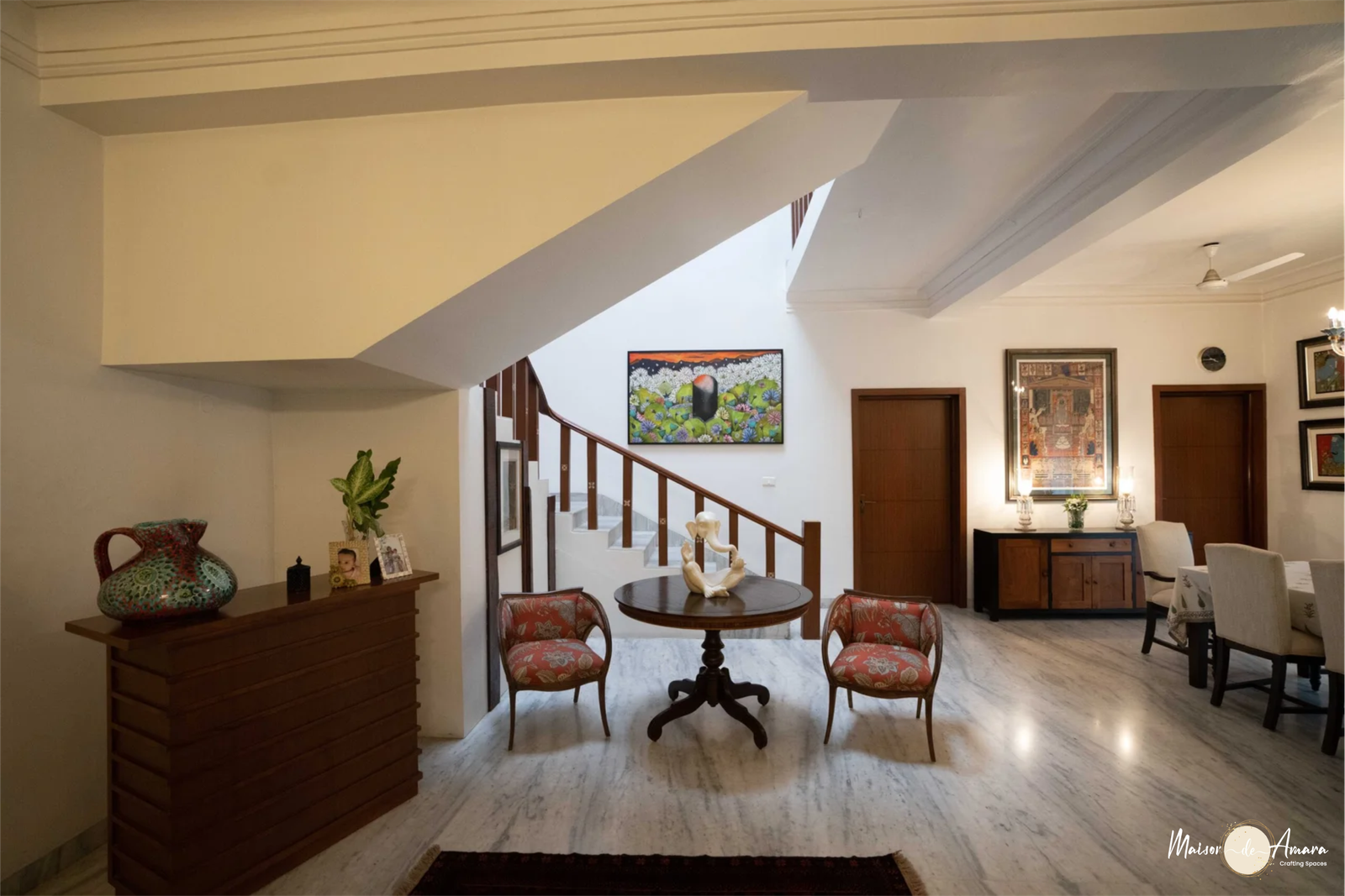 The fusion of Indian Art, landscaping, and accent lighting in this project goes beyond mere aesthetics; it encapsulates a narrative that transcends eras. Not just a design endeavor we set out to create a living space that is both luxurious and homely. With a nod to heritage, a touch of modernism, and the perfect play of light this project is a testament to timeless elegance.